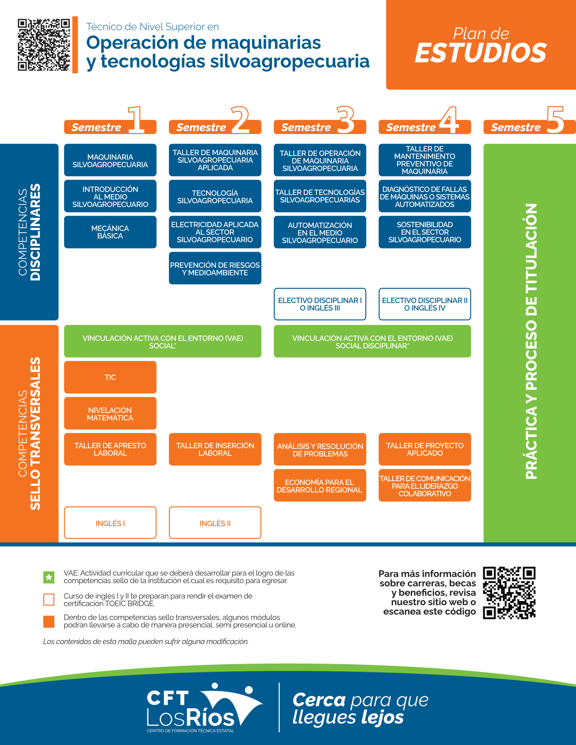 El TNS en Operación de Maquinarias y Tecnologías Silvoagropecuaria opera y realiza la mantención preventiva de maquinarias y sistemas automatizados, anticipando las condiciones globales para la producción y prevención de riesgos y diagnosticando problemas o fallas en su funcionamiento que permitan garantizar los estándares de calidad de los productos y objetivos de producción de la empresa. Además, propone mejoras de los procesos productivos, integrando tecnologías que contribuyan a la optimización de la operación en las empresas o instituciones del sector silvoagropecuario.